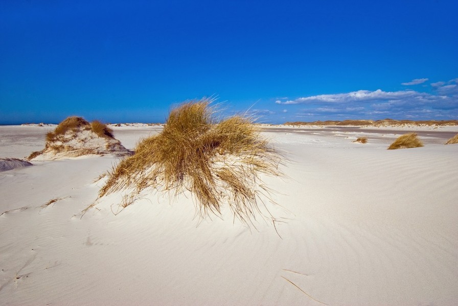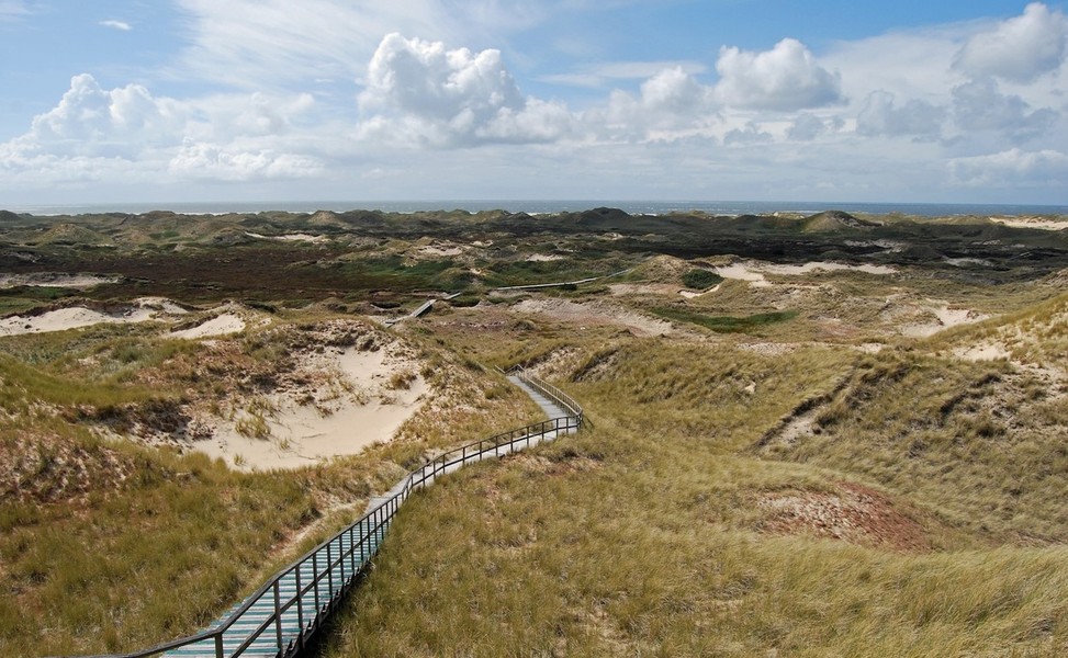 Hinter dem Badestrand kann man auf Bohlenwegen die Dünenlandschaft erkunden. Rauschende Kiefernwälder säumen den Dünenrand, dahinter finden sich duftende Salzwiesen und blühende Heide. An jeder Ecke kann man ein Fahrrad mieten, um die Insel zu erkunden. Im Osten steigt würziger Wattgeruch in die Nase. Dort – perfekt an das Hin und Her der Gezeiten am Wattenmeer angepasst – lassen sich unzählige Seevögel bestaunen.